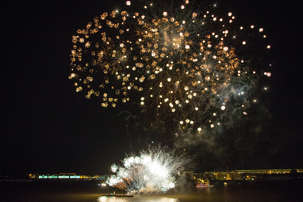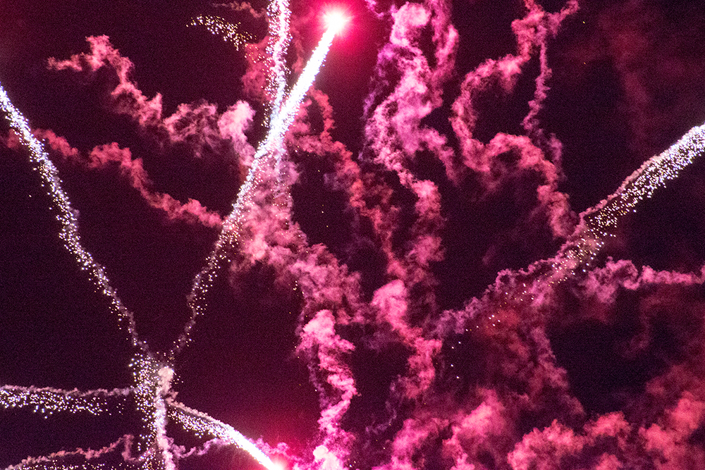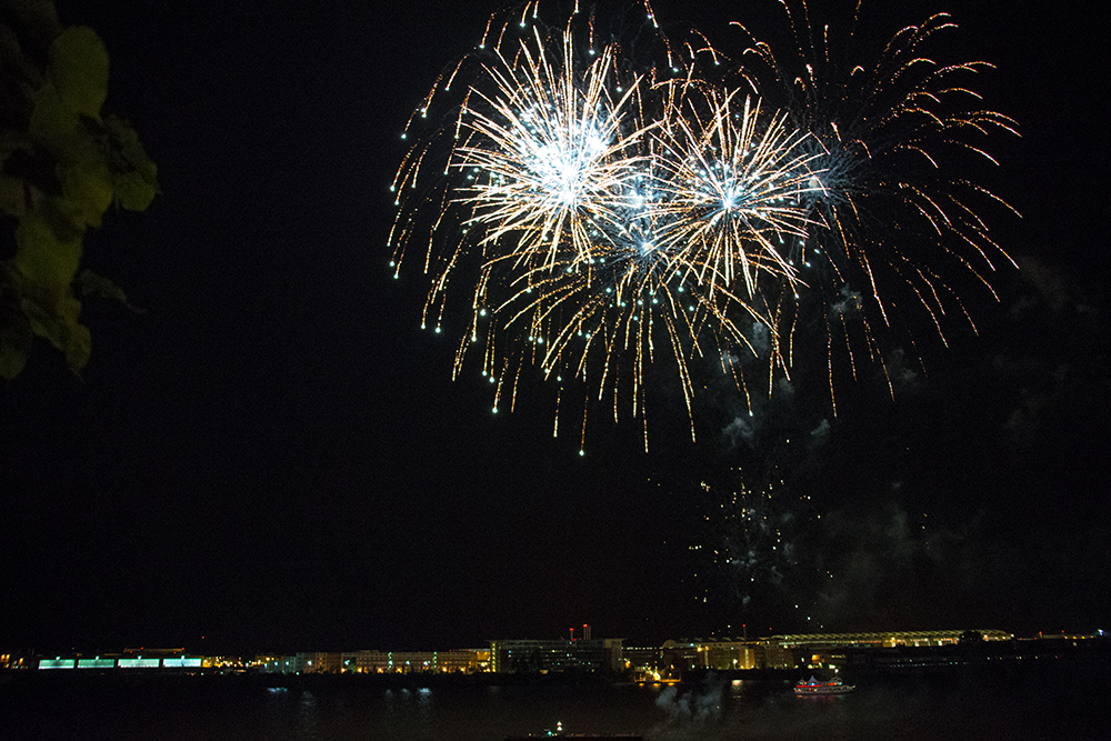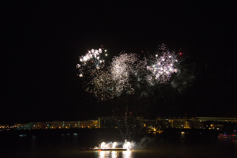 | ... im Hotel feiert eine riesige Hochzeitsgesellschaft und gerade, als wir mit dem Menü fertig sind, starten die Ihr ganz persönliches Feuerwerk ... |