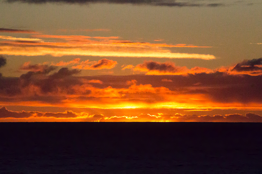 | ... ich habe meine Kamera ja ein bisschen umgestellt und erstelle die Fotos nun in einem anderen Format – das bedeutet zwar höllisch viel mehr Arbeit aber die Ergebnisse bezüglich der Bildqualität hauen mich hier täglich aufs neue vom Hocker – jedenfalls hatte ich noch niiiiiiiie einen so schönen Sonnenaufgang ... oder doch?? Irgendwo weiter südlich auf dem Atlantik ... vielleicht bei einer der anderen Ozeanüberquerungen ... vielleicht, vielleicht vielleicht ;-))) |