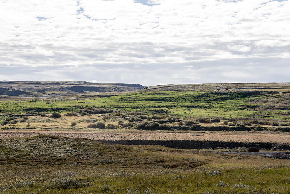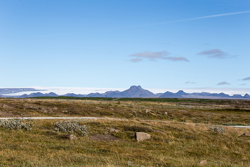 | ... auf Island ist alles irgendwie so seltsam dicht beieinander: Wir stehen hier ohne Jacke im hellen Sonnenschein neben dem Gulfoss und schauen über Flechten und Moose hinweg auf bergeweise Vulkanasche um gleich dahinter einen gewaltigen Gletscher auf gleicher Höhe zu finden ... |