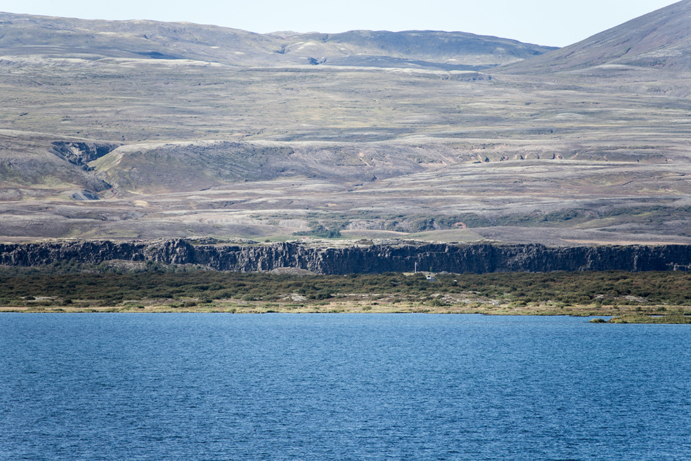 | ... das ist so eine der Aufnahmen, die man ganz schnell löschen sollte, bevor alle merken, dass man nicht fotografieren kann - geht aber nicht, weil auf diesem Foto etwas ganz besonders zu sehen ist, das man nur sehen kann, wenn man weiss, was man sieht - hääää???? - Lange Rede - kurzer Sinn: der Bergrücken auf der gegenüberliegenden Seite des Sees liegt nicht mehr Europa - das ist die Nordamerikanische Kontinentalplatte und die dunkle Klippe am Fusse des Berges ist die Bruchstelle zwischen der Nordamerikanischen und der Eurasischen Platte - Irre - das wollte ich schon immer mal sehen und gleich werde ich zwischen den Platten herumlaufen - los! hin da und zwar dalli!! |