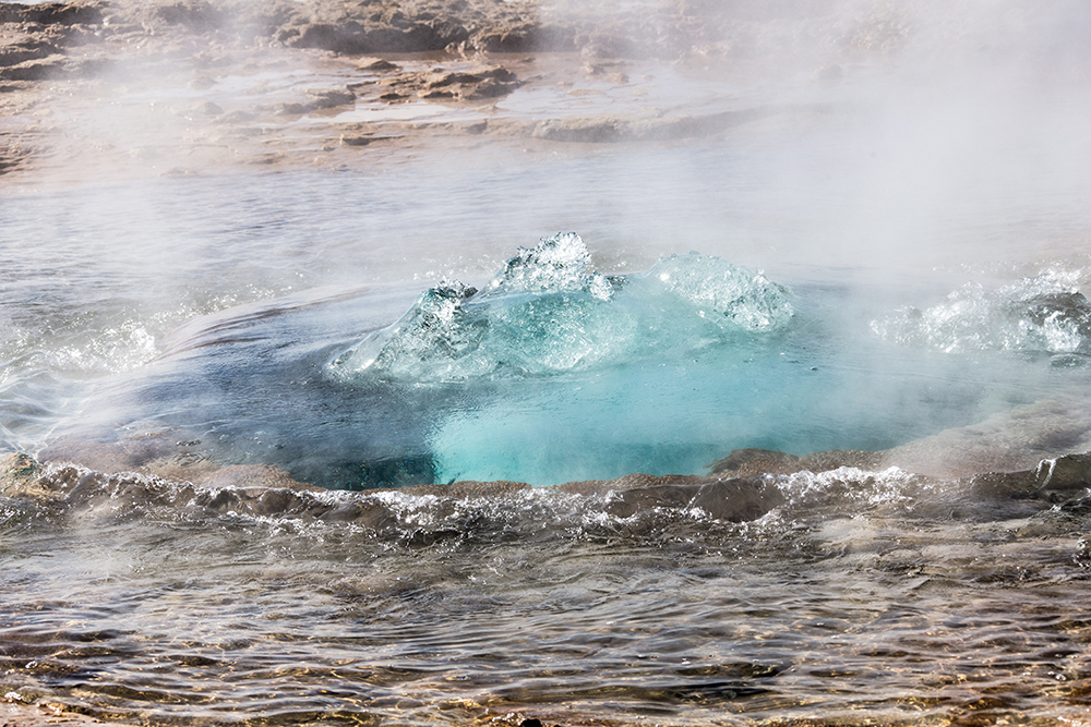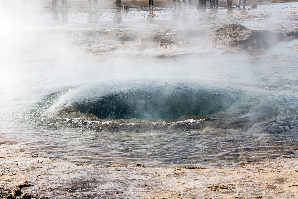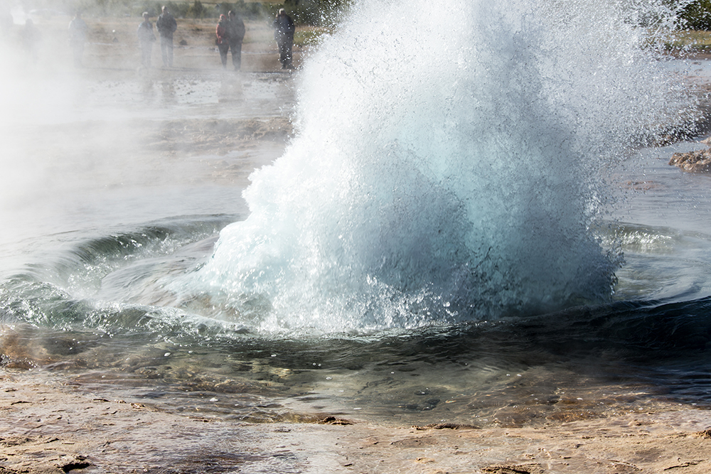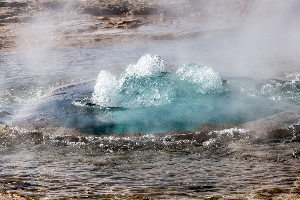... wieder ein paar Kilometer weiter dann der Geysir Strokkur – man sagt, er sei „der Vater“ aller Geysire“ ...