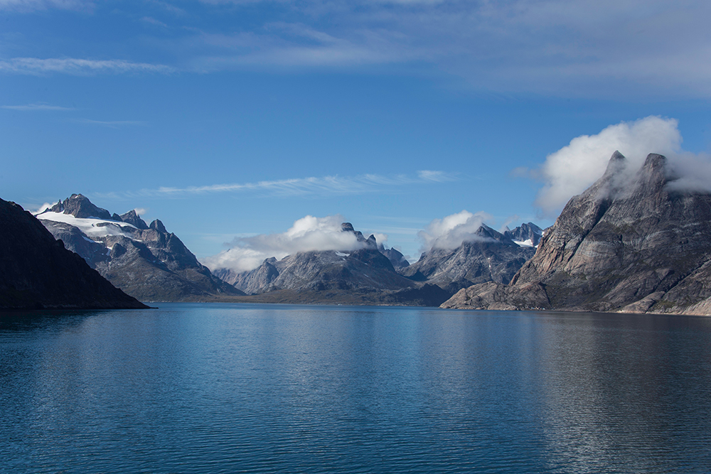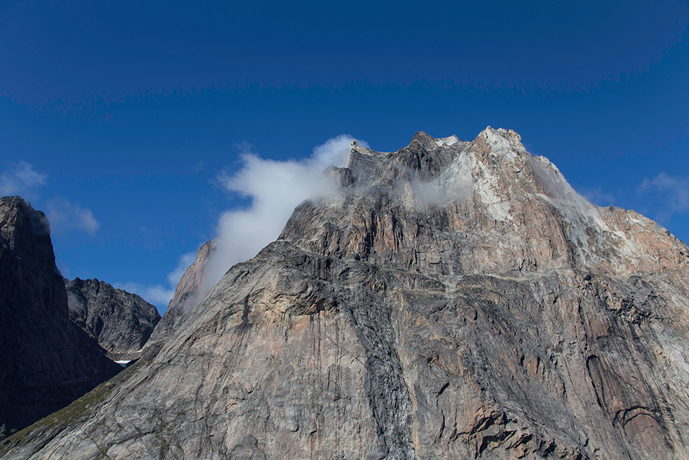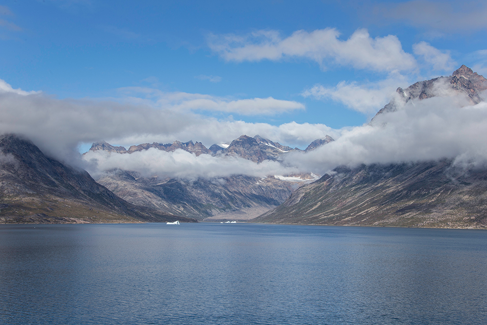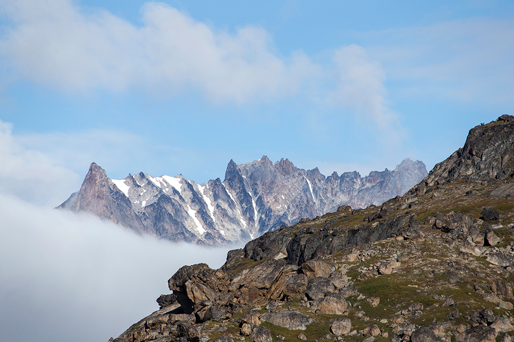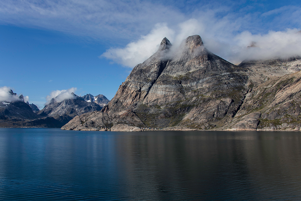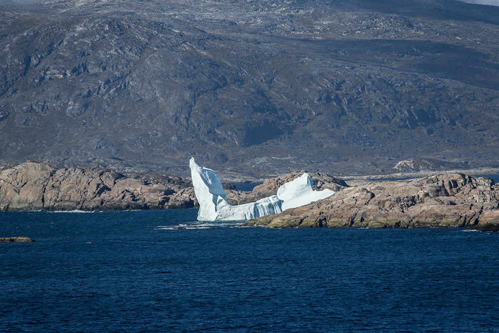 | ... und es gibt eine (tatsächlich nur EINE) Siedlung die unten. Hier leben ca. 100 Inuit und es werden jährlich weniger. Das sieht zwar sehr pittoresk aus ABER auch wenn ich die Einsamkeit liebe, erscheint es mir keineswegs erstrebenswert hier zu wohnen – jenseits aller Zivilisation ohne Bäume, Wiesen, Straßen und nur von schroffen Felsen rund rauer See umgeben ... |