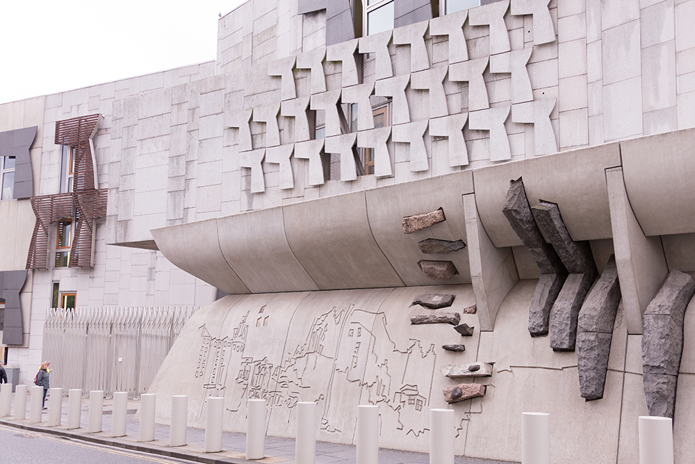 | ... und dann taucht plötzlich zwischen all den historischen Gemäuern das ultramoderne Parlamentsgebäude auf ... |