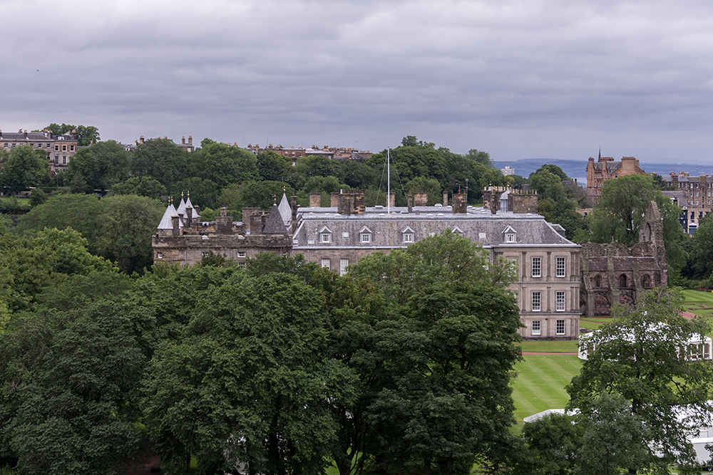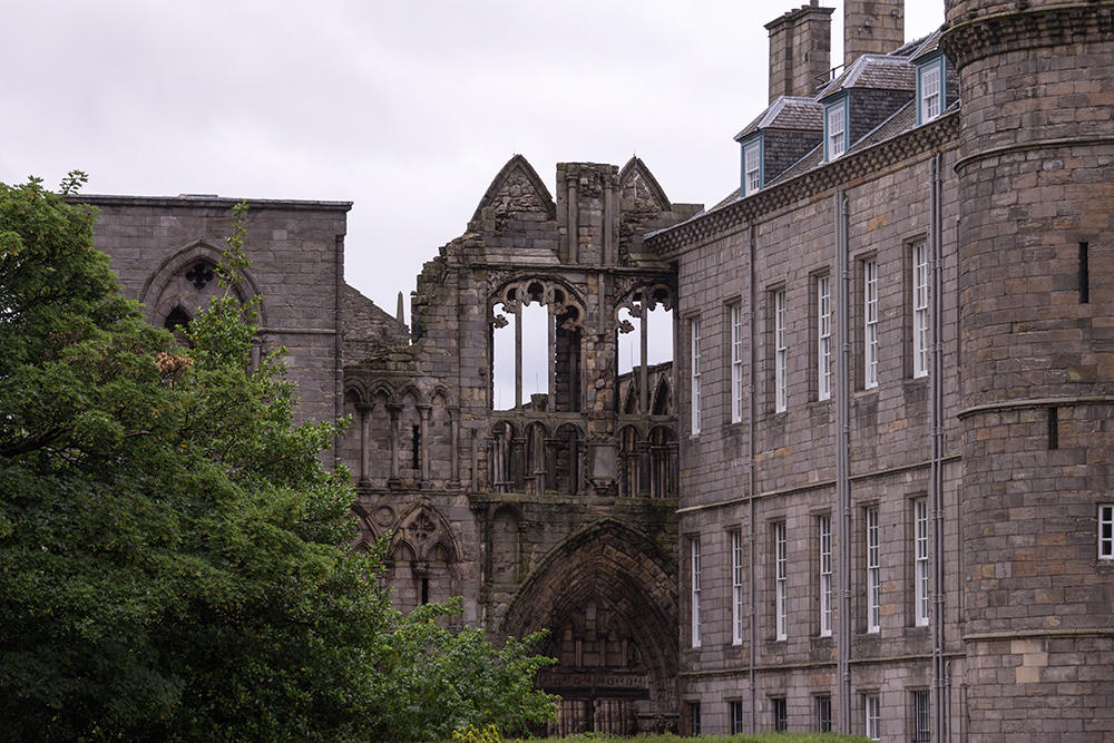 | ... die Abtei Holyrood Abbey, die sich auf dem Gelände des heutigen Palastes befindet, wurde im Jahre 1128 im Auftrag von König David I. gegründet. Als königliche Gründung und in der Nähe von Edinburgh Castle gelegen, wurde es ein wichtiges Verwaltungszentrum. Ein päpstlicher Legat traf dort im Jahre 1177 ein, während im Jahr 1189 ein Rat von Adligen zusammenkam, um über ein Lösegeld für den gefangenen König Wilhelm den Löwen (regierte als schottischer König von 1165 bis 1214) zu diskutieren. Das Parlament von Schottland versammelte sich zwischen 1256 und 1410 häufiger in der Abtei, und ab 1329 war sie wahrscheinlich bereits königliche Residenz. In 1370 wurde mit David II. der erste von mehreren schottischen Königen in Holyrood begraben. Jakob II. (englisch James II) wurde 1430 in Holyrood geboren, gekrönt, er heiratete hier und wurde auch hier begraben. Jakob III. (englisch James III) und Margarethe von Dänemark heirateten in Holyrood 1469. Die erste Königsresidenz befand sich im Gästehaus der Abtei, an der Stelle des heutigen Nordbereichs des Palastes. Im späteren 15. Jahrhundert waren bereits königliche Gemächer vorhanden ... |