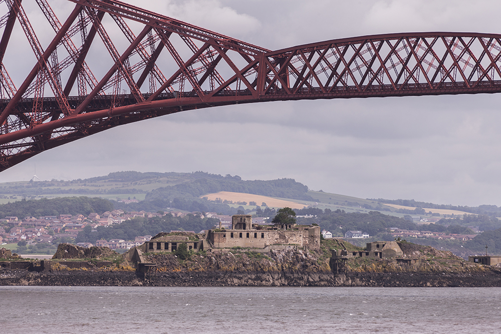 | … Inchgarvie (occasionally Inch Garvie) is a small, uninhabited island in the Firth of Forth. Its name comes from Innis Garbhachwhich is Scottish Gaelic for rough island. On the rocks around the island sit four caissons that make up the foundations of the Forth Bridge. Inchgarvie's fortifications pre-date the modern period. In the days when boats were the only way to cross the Firth of Forth, the island was on the main route between North Queensferry in Fife and South Queensferry in Lothian. This made it strategically important. Although now uninhabited, Inchgarvie has been inhabited throughout various periods of history. The first recorded time was in the late 15th century.Like nearby Inchmickery,its profile and colour makes it look like a small warship from a distanance. It was armed with coast defence guns from 1901 until 1906, and again from 1908 until the 1930s … |