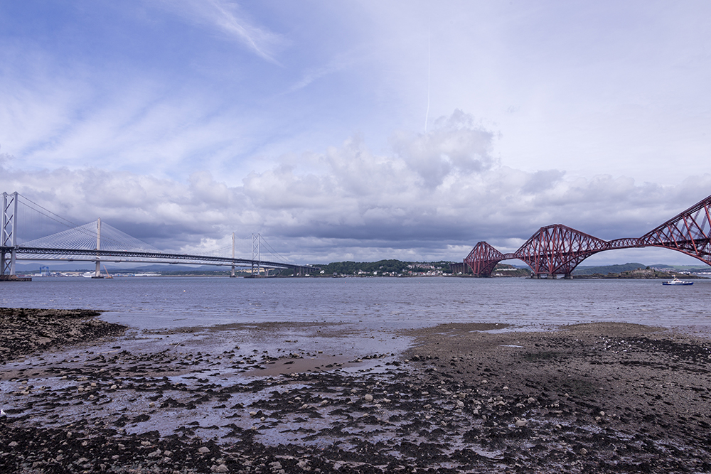 | ... South Queensferry – der Firth of Forth hat hier einen gewaltigen Tiedenhub von 6 m und eine heftige Gezeitenströmung - bei Ebbe könnte man auch meinen irgendwo mitten im Wattenmeer zu stehen ... |
