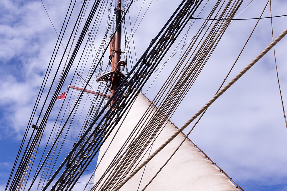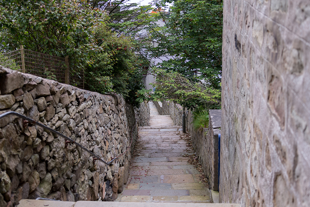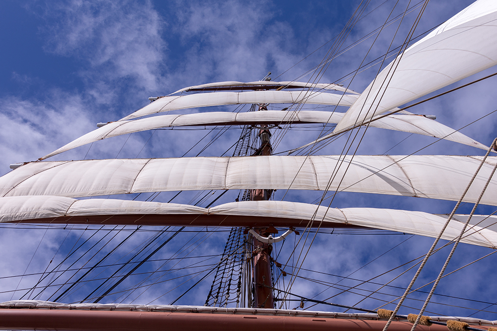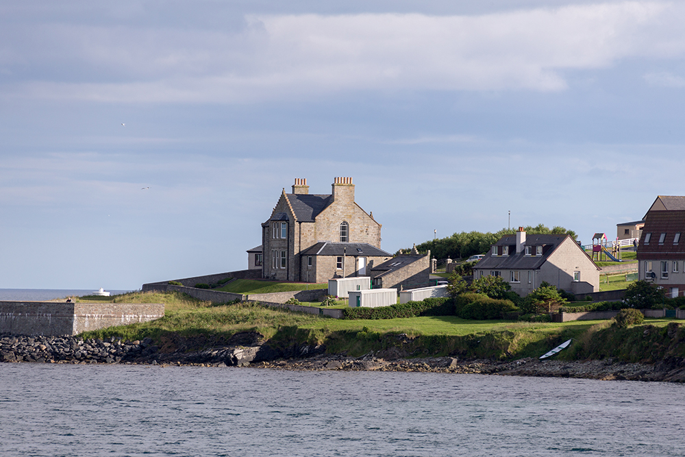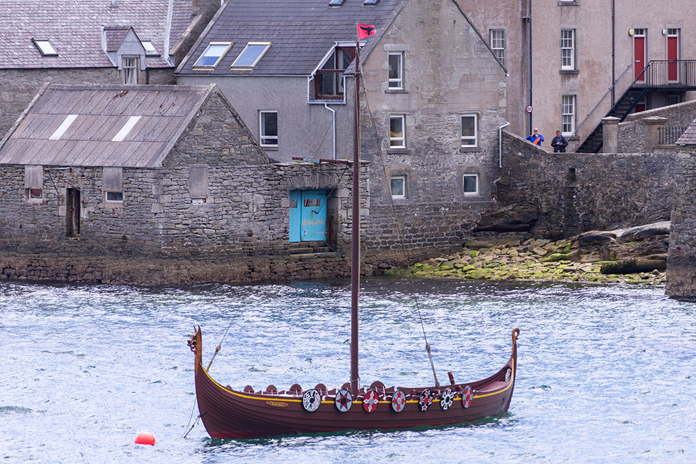| ... überall, wo wir entlangschlendern schauen irgendwo die Masten der Sea Cloud II über die Dächer von Lerwick hinweg ... |