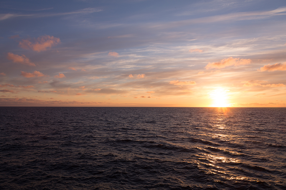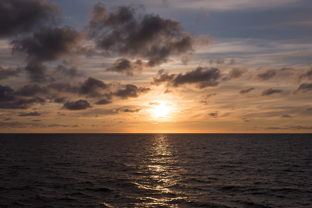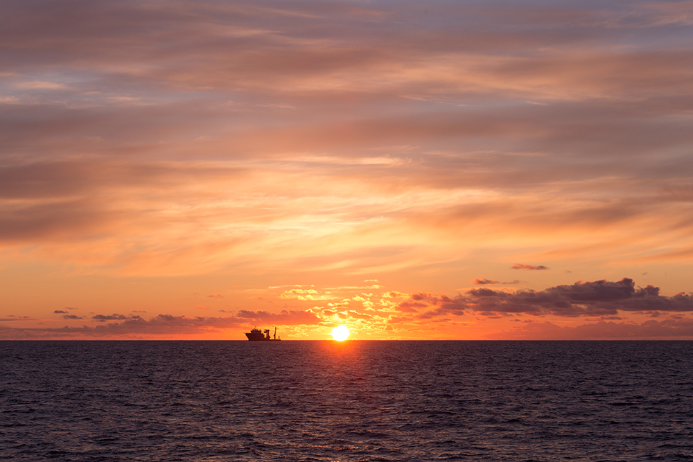 | ... gleich fällt die Sonnenscheibe ins Wasser und zwischenzeitlich ist auch der letzte, frierende Gast an Deck um dieses Schauspiel nicht zu verpassen ... |