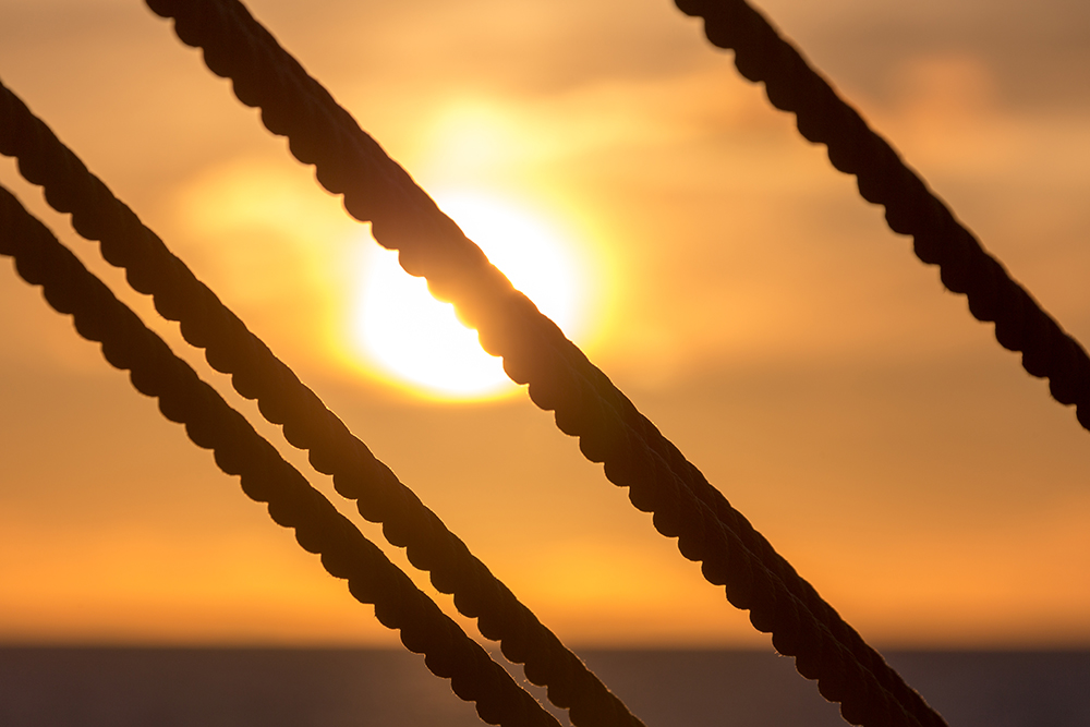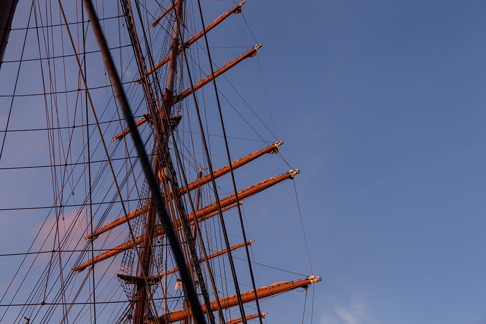 | ... auch die Masten der Sea Cloud II baden im weichen Licht des Sonnenuntergangs ... |