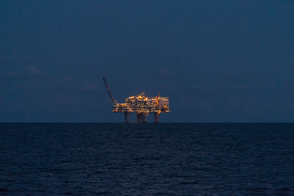 | ... mit zunehmender Dunkelheit beginnen die Bohrinseln zu funkeln ... |