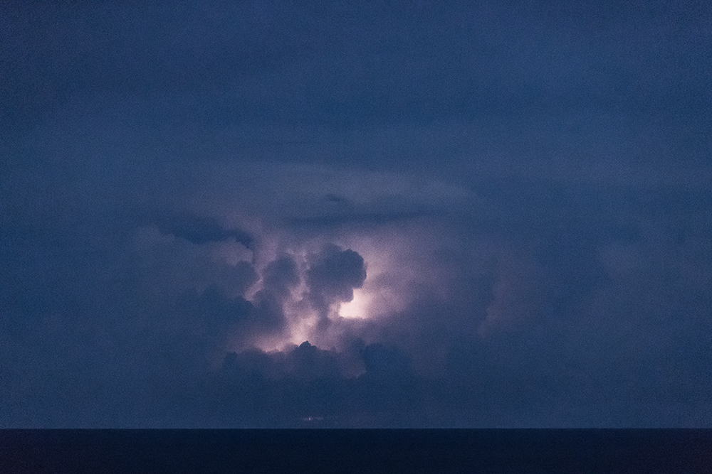... für den Donner ist es zu weit weg, aber die Blitze verfolgen uns stundenlang ...