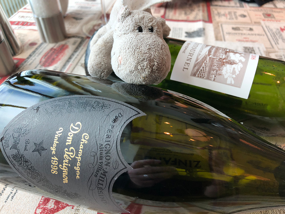 ... Fridolin ist glühender Verfechter der Philosophie, dass man lokale Weine trinken soll - braver Hippo!! ...
