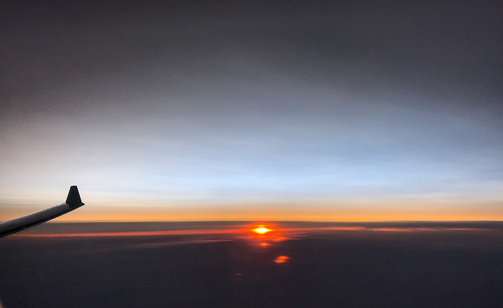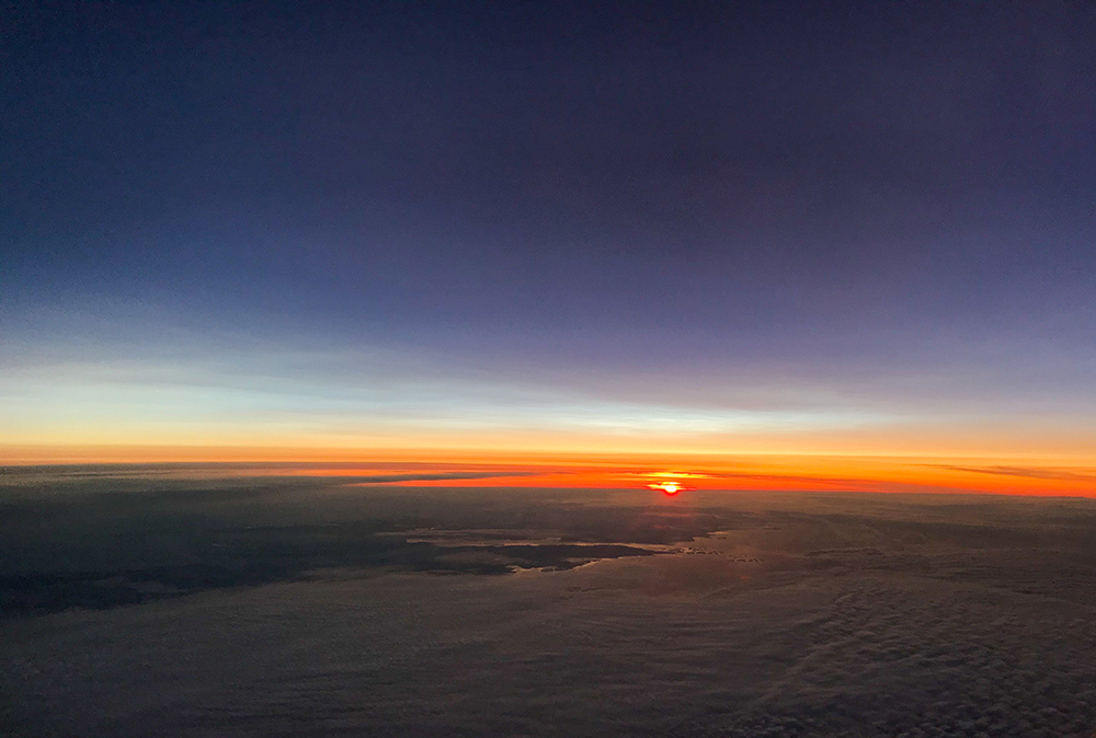 Nacht entlanggeflogen ... es war ein nicht enden wollender Sonnenuntergang oder endlos vielen Sonnenaufgänge ...