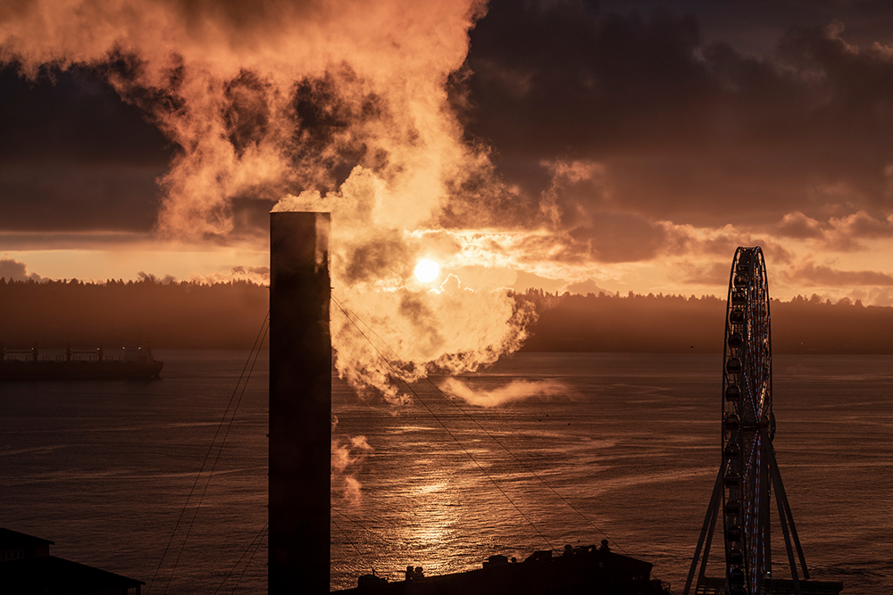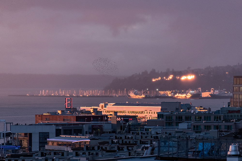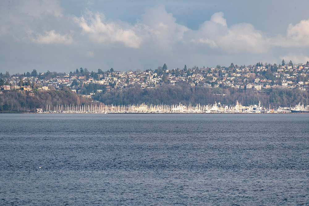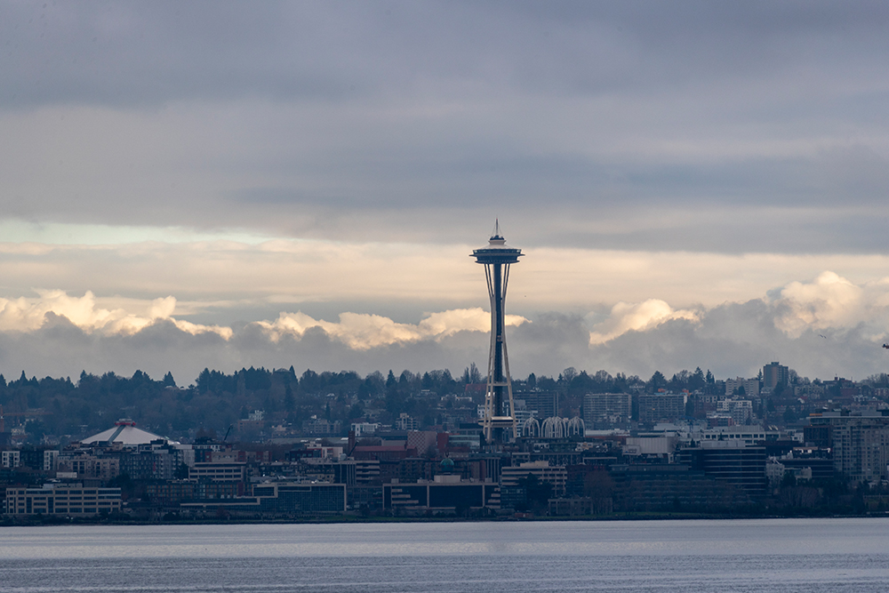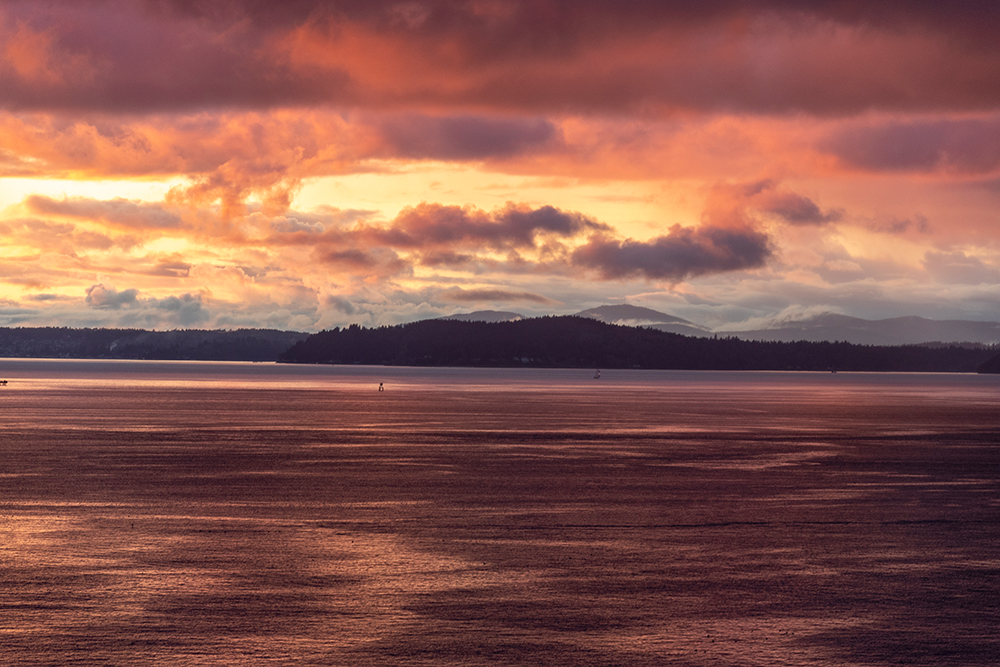... die Wolken hängen so tief, dass sie das Wasser berühren und die Inseln des Puget Sound verstecken - von
