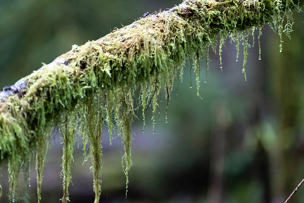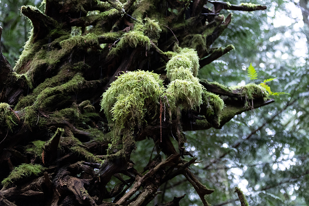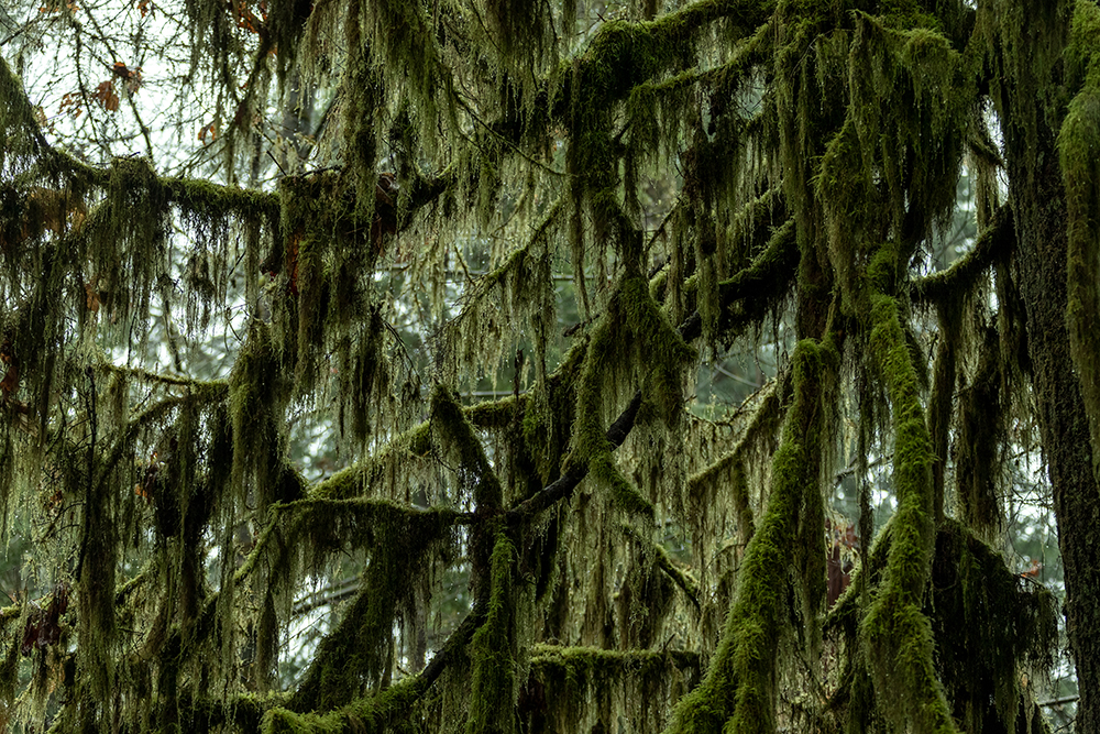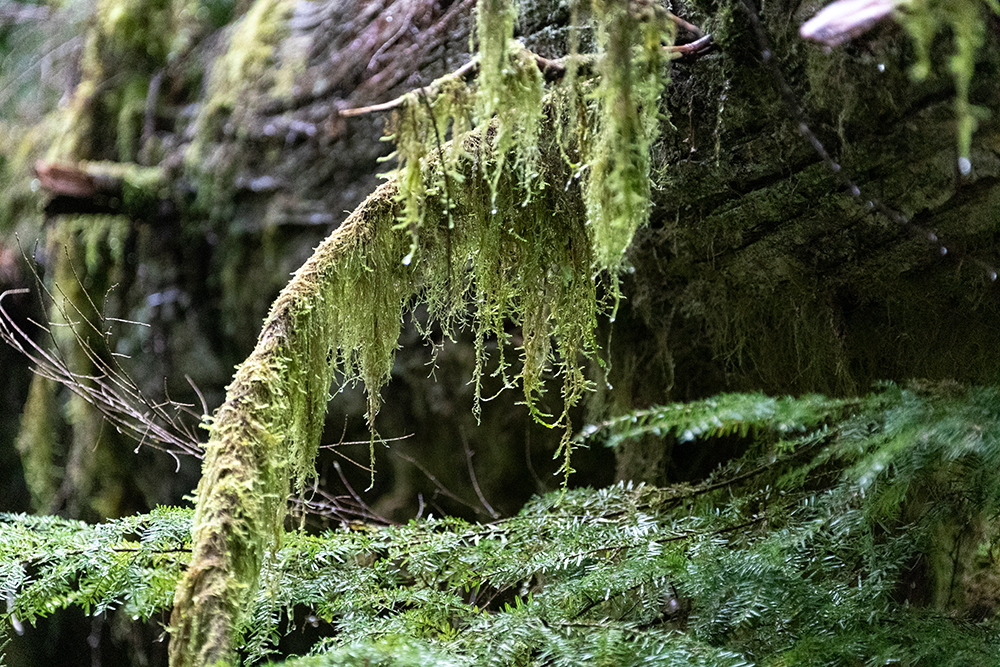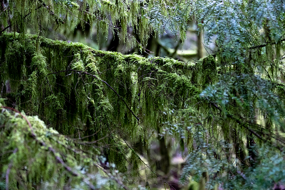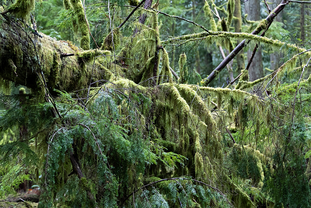 Lebensbaum. Da der Baumbestand hier noch relativ alt ist, sind die meisten Bäume mit epiphytischen Flechten und
